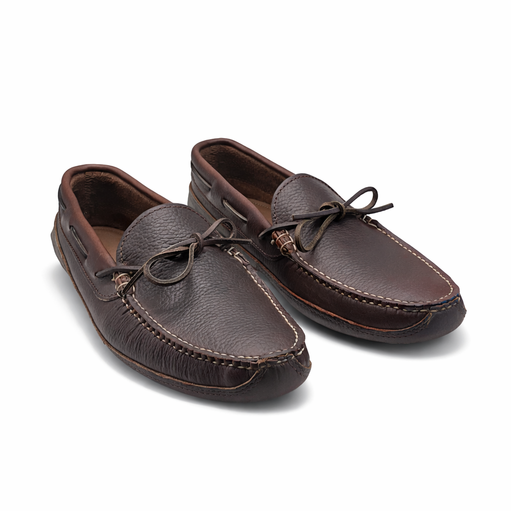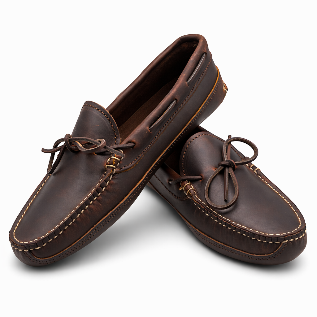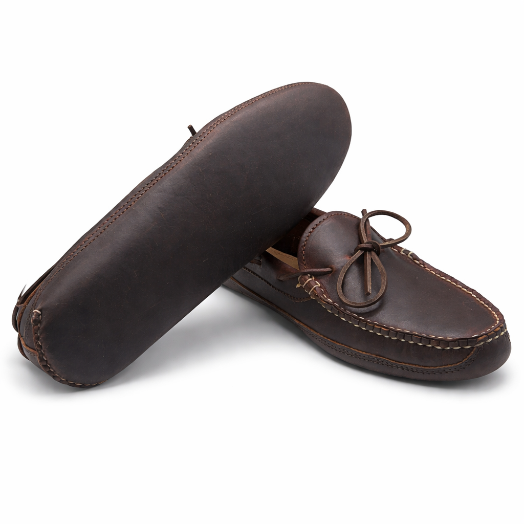 A Quoddy classic... built like the slipper you grew up with. Our double bottom house slipper is the epitome of comfort. These soft but durable leather slippers are great for wearing about the house. Beautiful and comfortable... treat your feet with a pair of these classic mocs. They also make a great "Driver"...