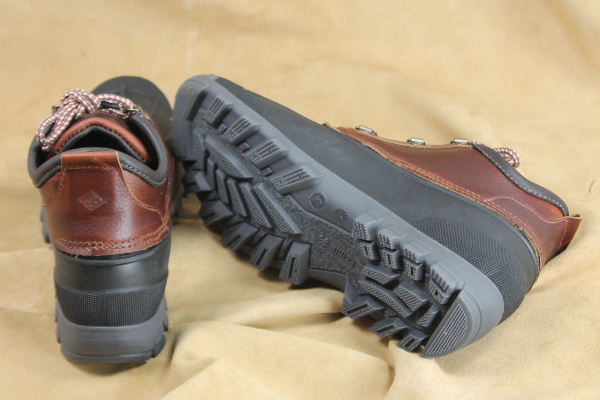 Lace these up to protect feet from elements. Premium Horween Cinnamon Driftwood Full Grain leather upper features a gusseted tongue to keep debris and moisture out. Our Quoddy insoles are anatomically shaped and cushioned to keep feet extra comfortable. Lightweight and waterproof rubber shells repel rain and snow. The outsole is a deep, self-cleaning lug design built for traction in the worst conditions.