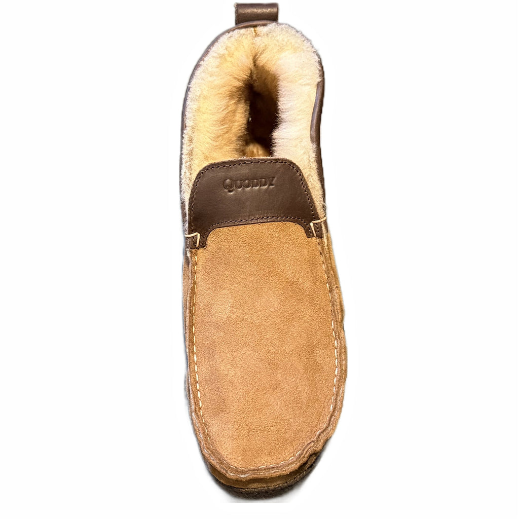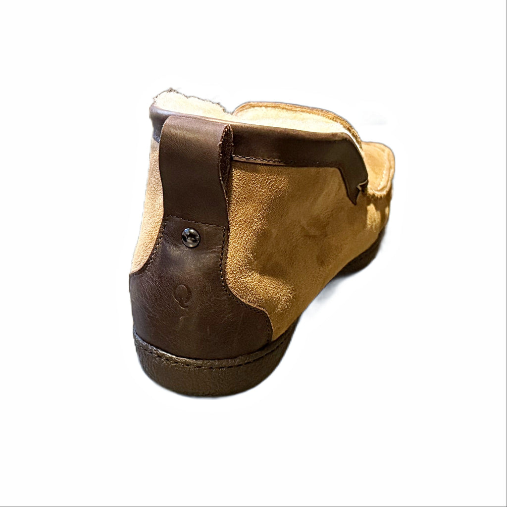 Our latest slipper update is built on our EXERSOLE® by Quoddy platform using our Quoddy ESQ "Barefoot" shape. All ESQ products are built with more space in the forefoot to let your toes spread out and perform as they were intended. These slipper boots were originally designed to keep New England prep school and college students’ feet warm in those drafty old dorms. The new improved version has all the elements of the original style, but we added some modern updates as well. Our new Quoddy Quads are made on our ESQ "Barefoot" shape and are every bit a part of our EXERSOLE® by Quoddy line of footwear. Built with handsewn twinface sheepskin, a soft leather collar and backing, and a leather pull tab to help with easy on and off. If you want to go outside these slippers have our Vibram®️Cup Outsole for wearability and durability. Don't be afraid to head out to the Quad for a tailgate or to the store for some snacks. The Quoddy Quad Cup Sole will take you anywhere you want to go!