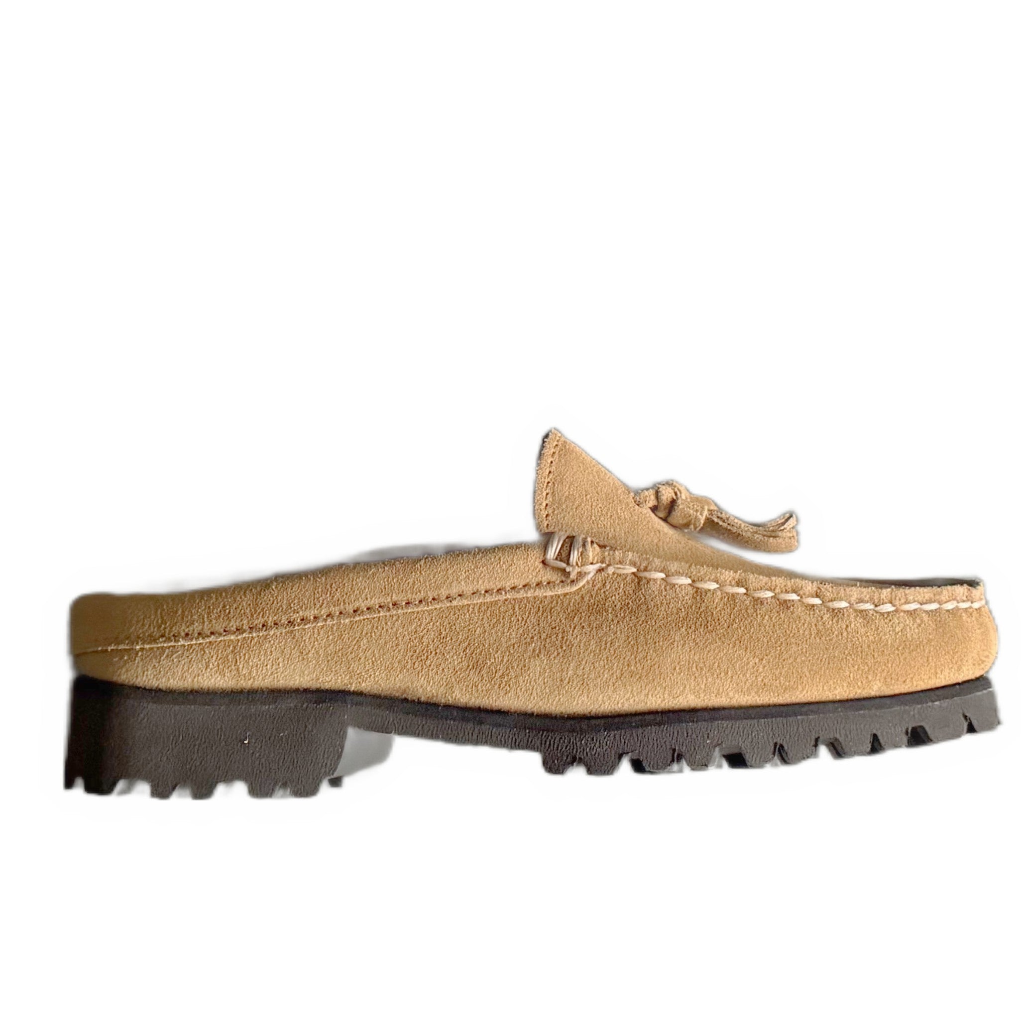 Mule designed with a comfortable suede upper of a classic tassel slip-on over a soft lug outsole. Uppers are handsewn in premium suede, with a soft hand and a rich look. The perfect option for easy casual style...