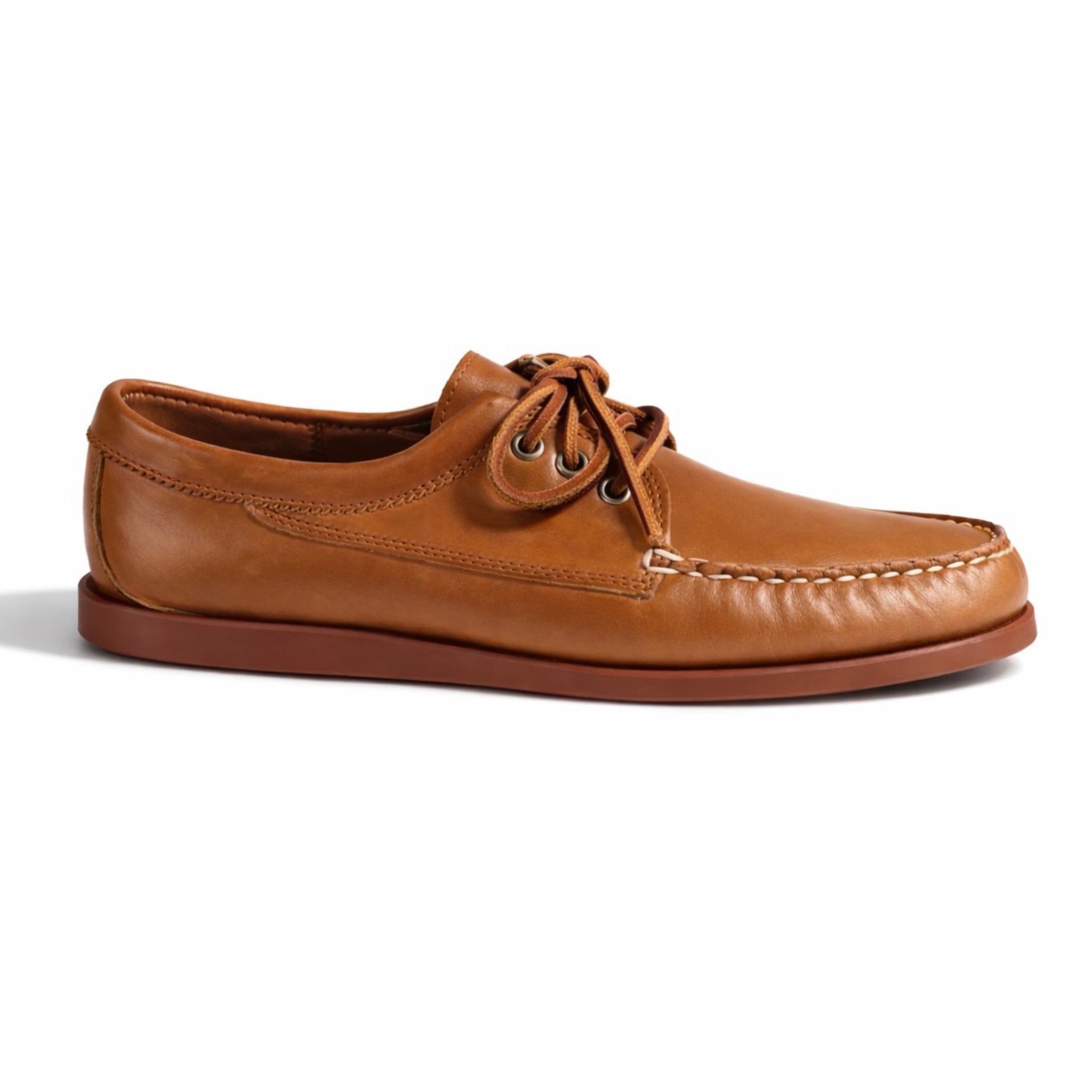 We blend the construction of a classic moccasin with a traditional blucher’s open lacing system for a shoe that cradles your foot in comfort and is easy to step into and take off. Uppers are tooled in pull-up leather or suede. Wedged camp outsoles are crafted by Quoddy for superior wet or dry traction underfoot. Finished with pinking around the collar, lacquered eyelets and rawhide laces. Handmade in Maine using globally sourced materials.