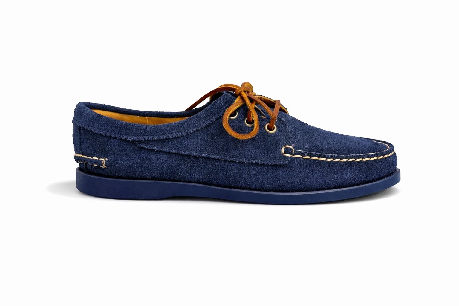 We blend the construction of a classic moccasin with a traditional blucher’s open lacing system for a shoe that cradles your foot in comfort and is easy to step into and take off. Uppers are tooled in premium suede. Wedged camp outsoles are crafted by Quoddy for superior wet or dry traction underfoot. Finished with pinking around the collar, lacquered eyelets and rawhide laces.